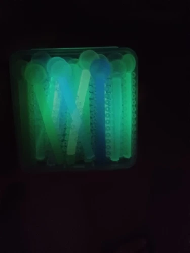 It arrived much earlier than the established date! Well packaged, the colors are not pretty but they do glow in the dark, although I don't know if it will have the same effect in the mouth, since I put a lamp under it to make it glow.